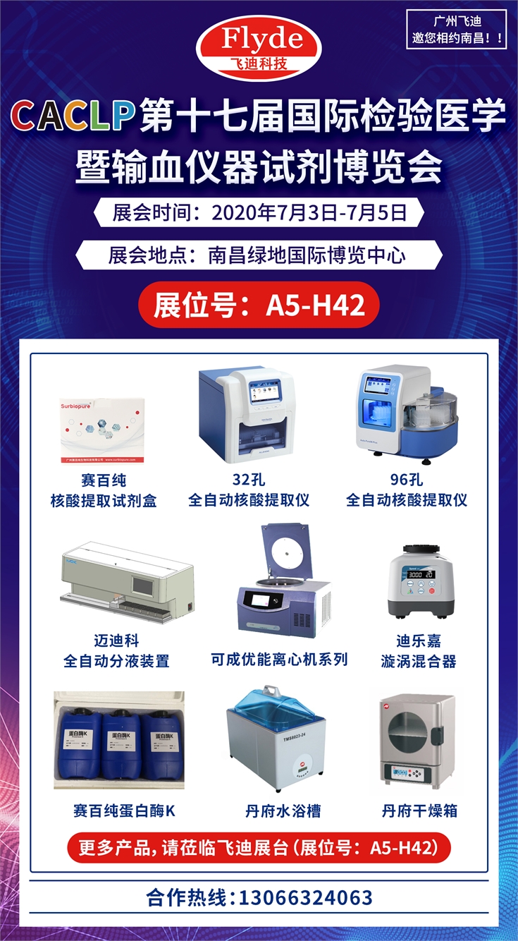 展出產(chǎn)品有:離心機,核酸提取儀,核酸提取試劑盒,全自動分液裝置,漩渦混合器,蛋白酶K,水浴槽,干燥箱......