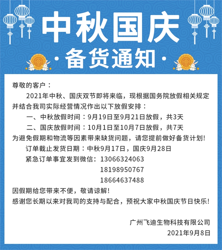有需要的合作伙伴請安排好備貨訂單,感謝您對飛迪生物的支持和關注!