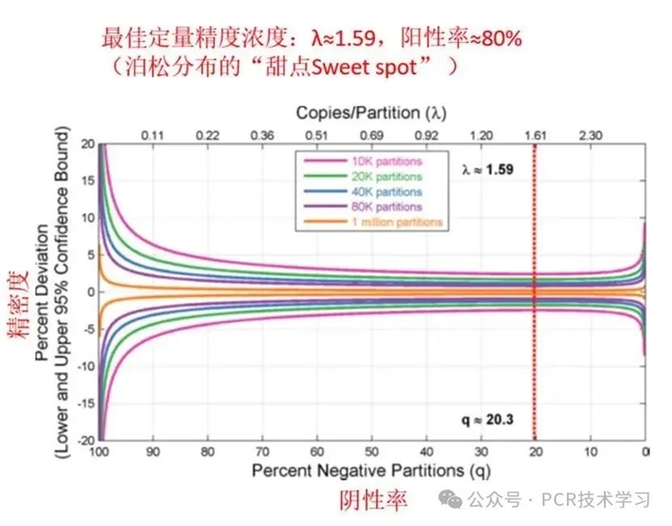 這致意味著你的結果在 10%的精度下略顯不可靠。換句話說,當你在較低拷貝數時,測量樣本之間的微小差異會變得更加困難。請注意即使在這些階段精度較低,dPCR仍然比其他分子技術如 qPCR 更可靠。