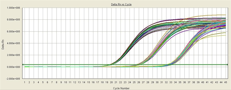 結(jié)果顯示:對(duì)腸道病毒 EV71 型高、中、低的提取重復(fù)性好。CV%≦5%。擴(kuò)增熒光值 8.0×105 說明擴(kuò)增效率高。