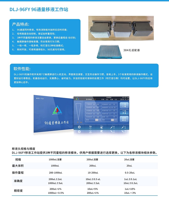 96通道同時移液,有效消除板內加樣反應時間差 耗材開放,可使用通用吸頭,96孔板均可使用